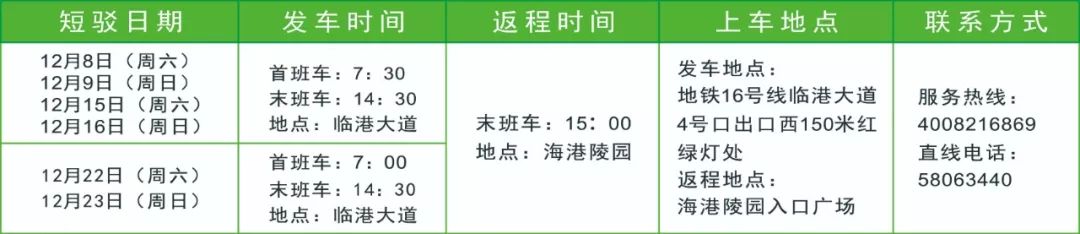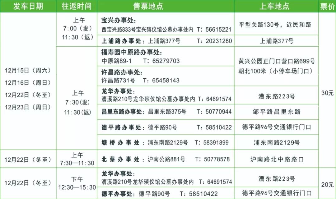 2. 12月22日(冬至)12:30(发)-15:30(返)班车票售价20元;