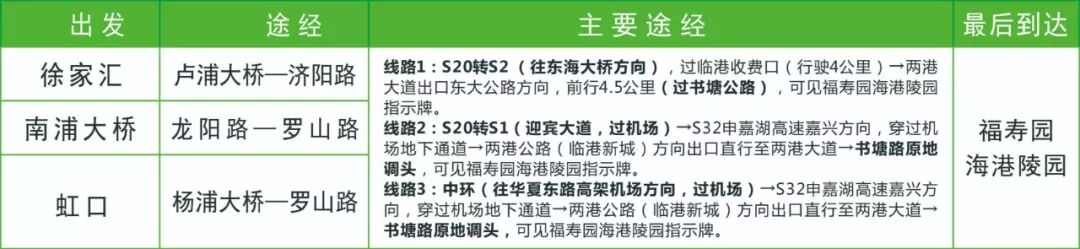 乘坐上海轨道交通2号线、7号线至龙阳路或11号线至罗山路后,换乘16号线至临港大道站4号口出,转乘福寿园海港陵园短驳车。