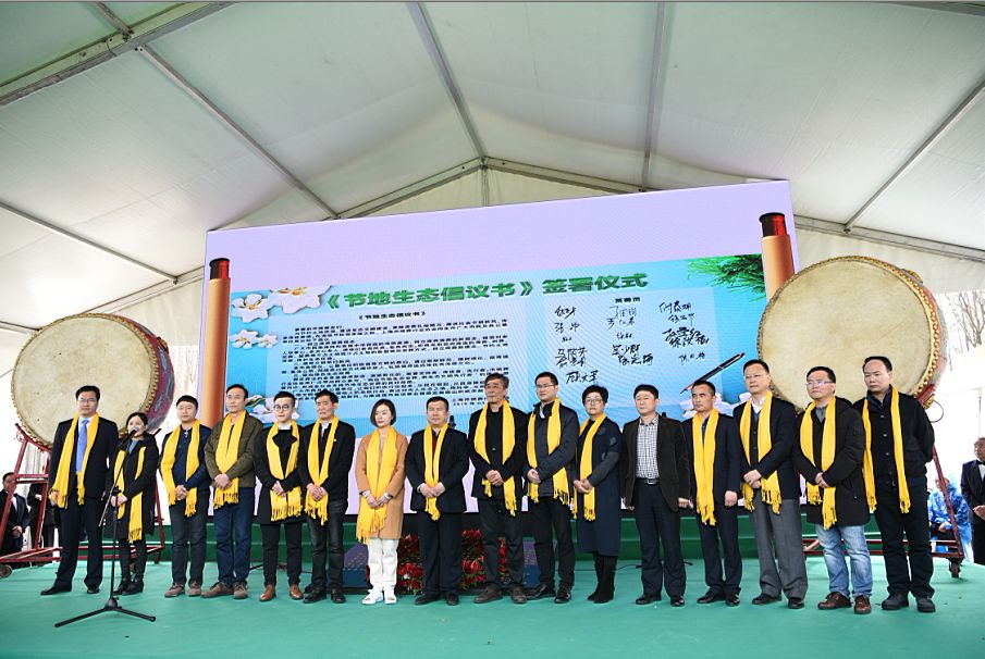 并上台签署倡议书,提倡“节地生态安葬”
