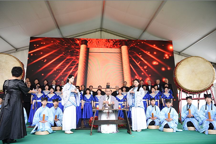 青少年身着汉服跪诵《孝经》